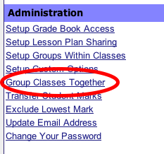 For a number of reasons, there may be times that record keeping will be easier if you are able to group classes together. To begin this process, click the Group Classes Together link under the Administration section. On the following screen, click the Add a Group link on the lower left of the page.