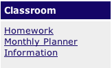 Monthly Planner - Shows a color coded monthly overview of posted homework & weekly plans